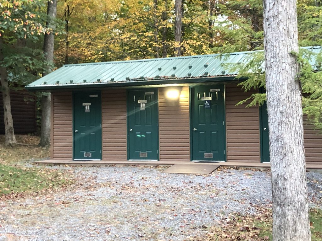 2 Sets of Bathhouses and 2 Laundry Rooms – 1 at the front of the park by the pavilion and 1 in the cabin area.